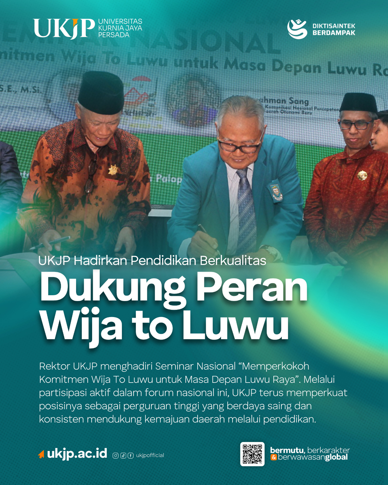 Rektor Universitas Kurnia Jaya Persada (UKJP), Prof. drg. Mansjur Nasir, Ph.D., Sp.Ort menghadiri Seminar Nasional Memperkokoh Komitmen Wija To...