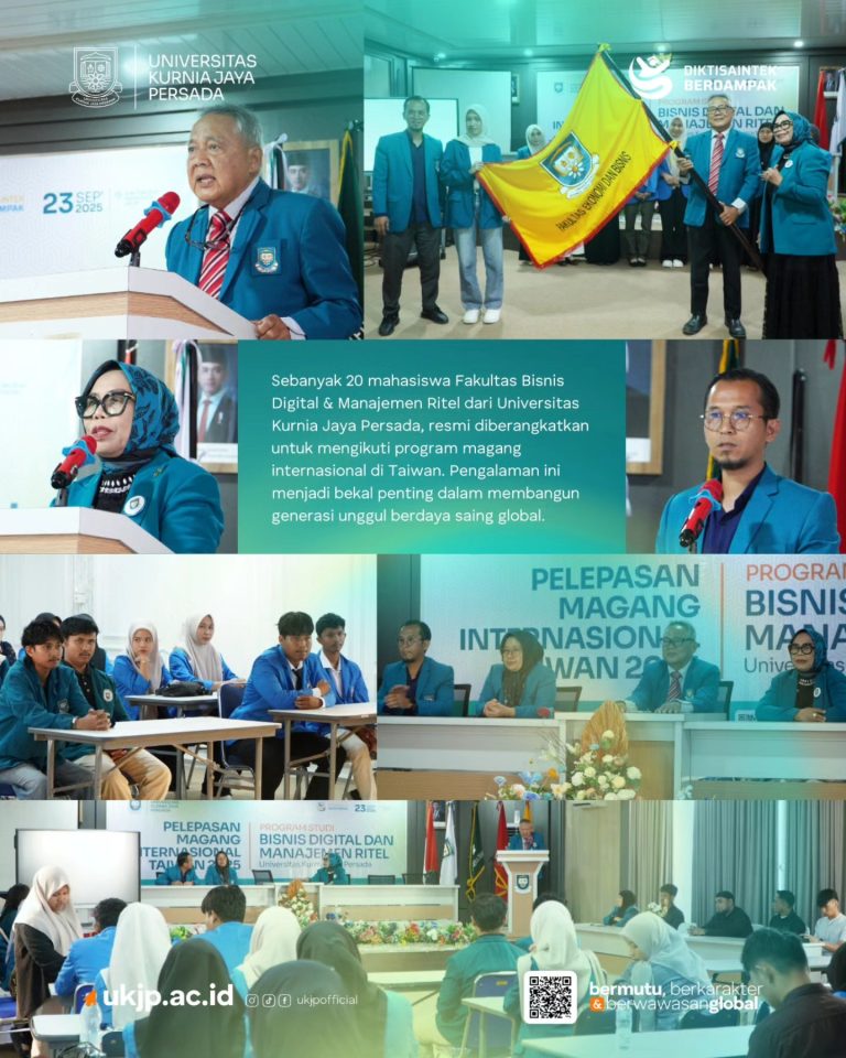 UKJP News – Kesempatan berkarier di kancah global kini semakin nyata bagi mahasiswa Universitas Kurnia Jaya Persada (UKJP). Sebanyak 20 mahasiswa Fakultas Bisnis Digital dan Manajemen Ritel resmi diberangkatkan untuk mengikuti program magang internasional di Taiwan, Selasa (23/9/2025).