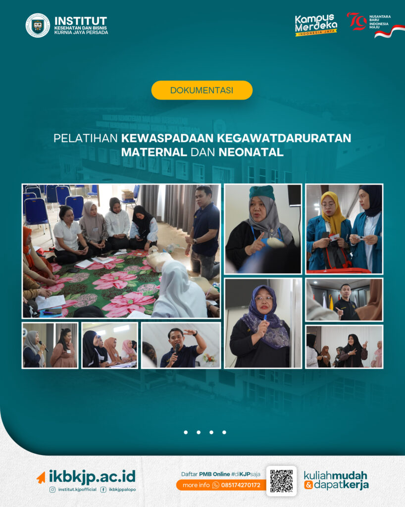 KJPNews – Pentingnya peningkatan kompetensi tenaga kesehatan (nakes) kembali ditegaskan dalam Pelatihan Kewaspadaan Kegawatdaruratan Maternal dan Neonatal (KKMN) yang digelar oleh Institut Kesehatan dan Bisnis Kurnia Jaya Persada (IKB-KJP) bekerjsama PT. Inovasi Pelatihan Kesehatan Mandiri (IPKM), di Aula Kampus 2 IKB-KJP Palopo, Ahad, 11 Agustus 2024.