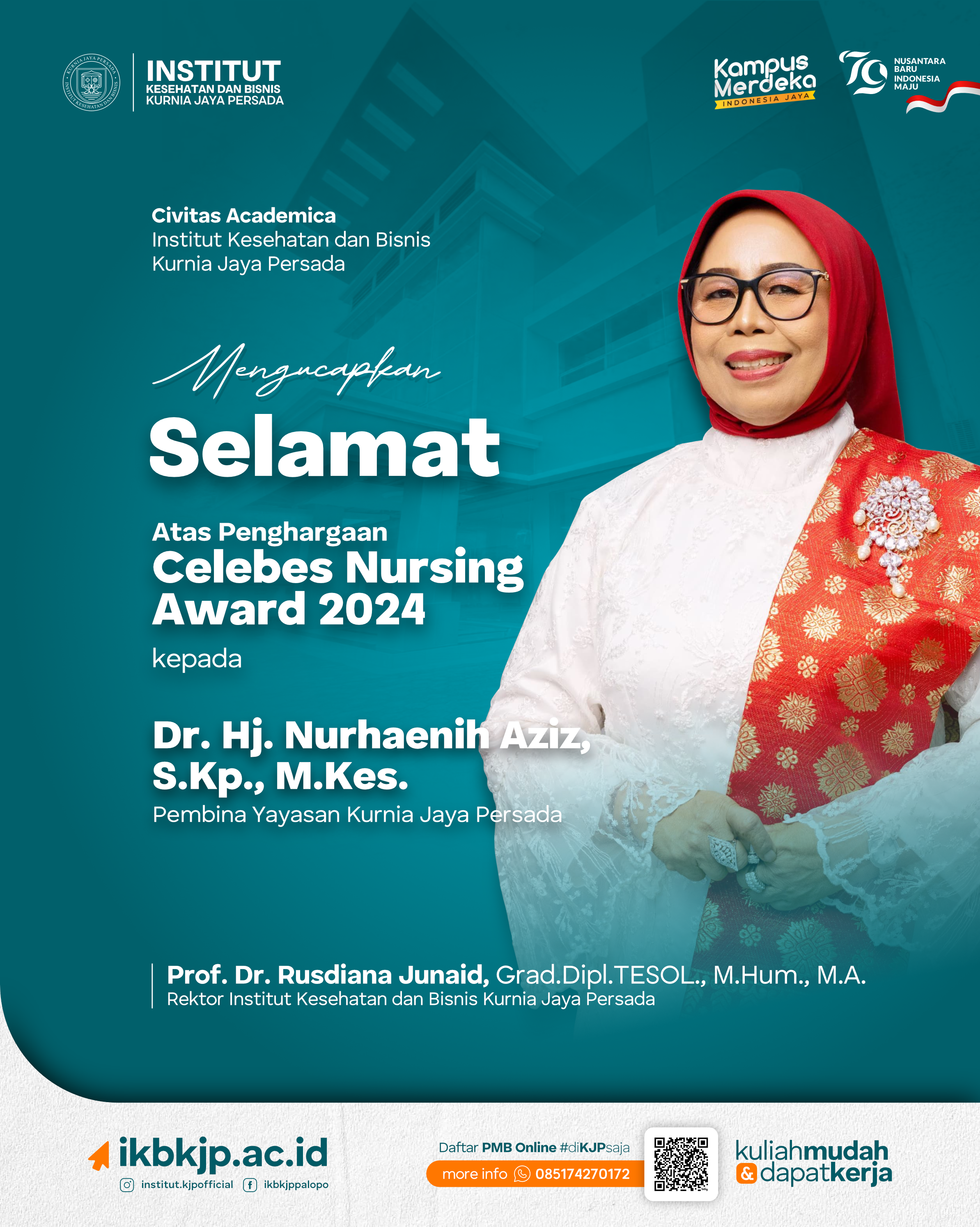 Alhamdulillah… Pembina Yayasan Kurnia Jaya Persada, Dr. Hj. Nurhaenih Aziz, S.Kp., M.Kes. mendapatkan penghargaan Celebes Nursing Award 2024 kategori...