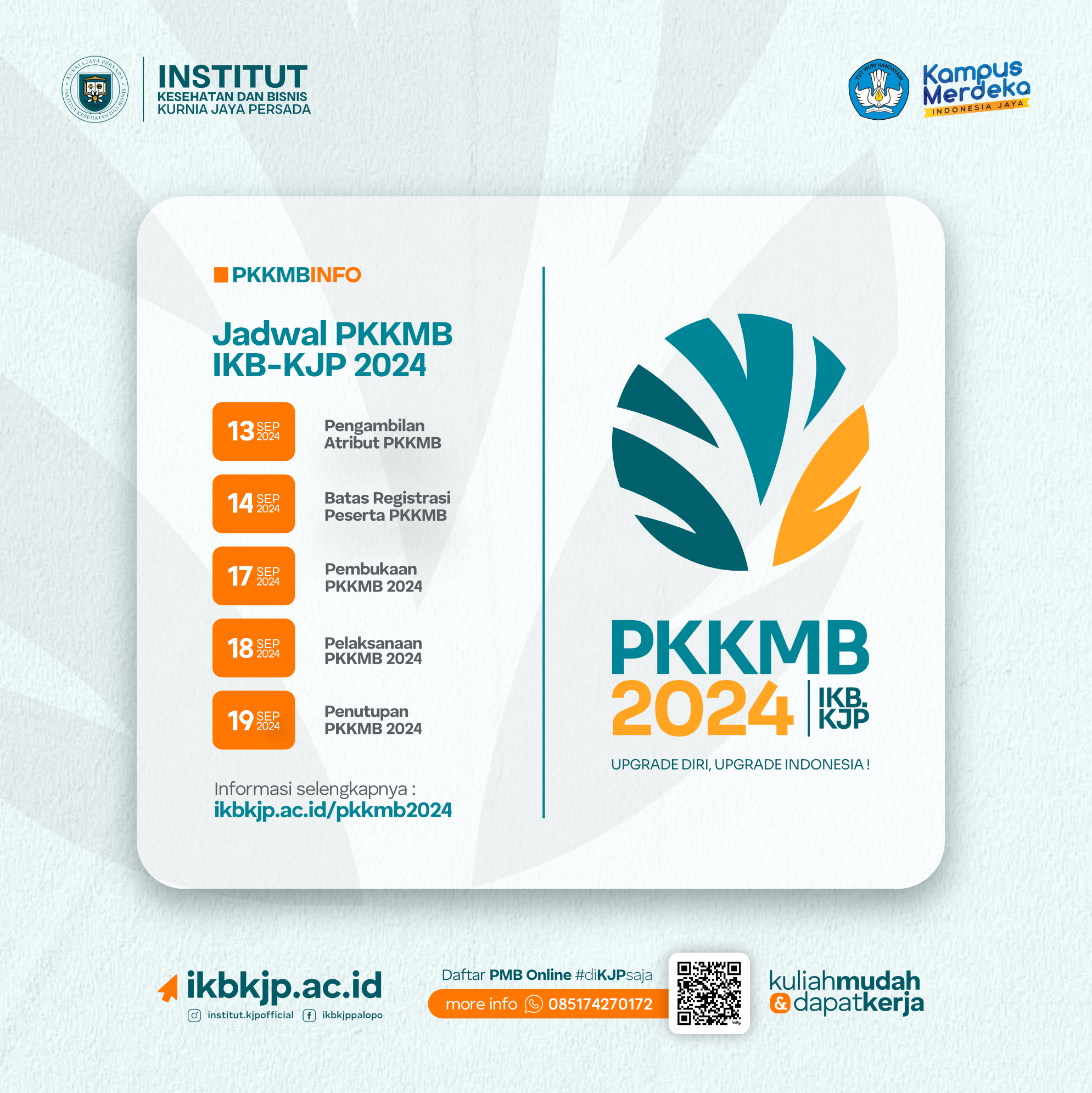 Halo Adik-adik Camaba Peserta PKKMB IKB-KJP 2024 !Berikut tahapan Pelaksanaan PKKMB 2024 yang akan dilaksanakan secara offline di Kampus...
