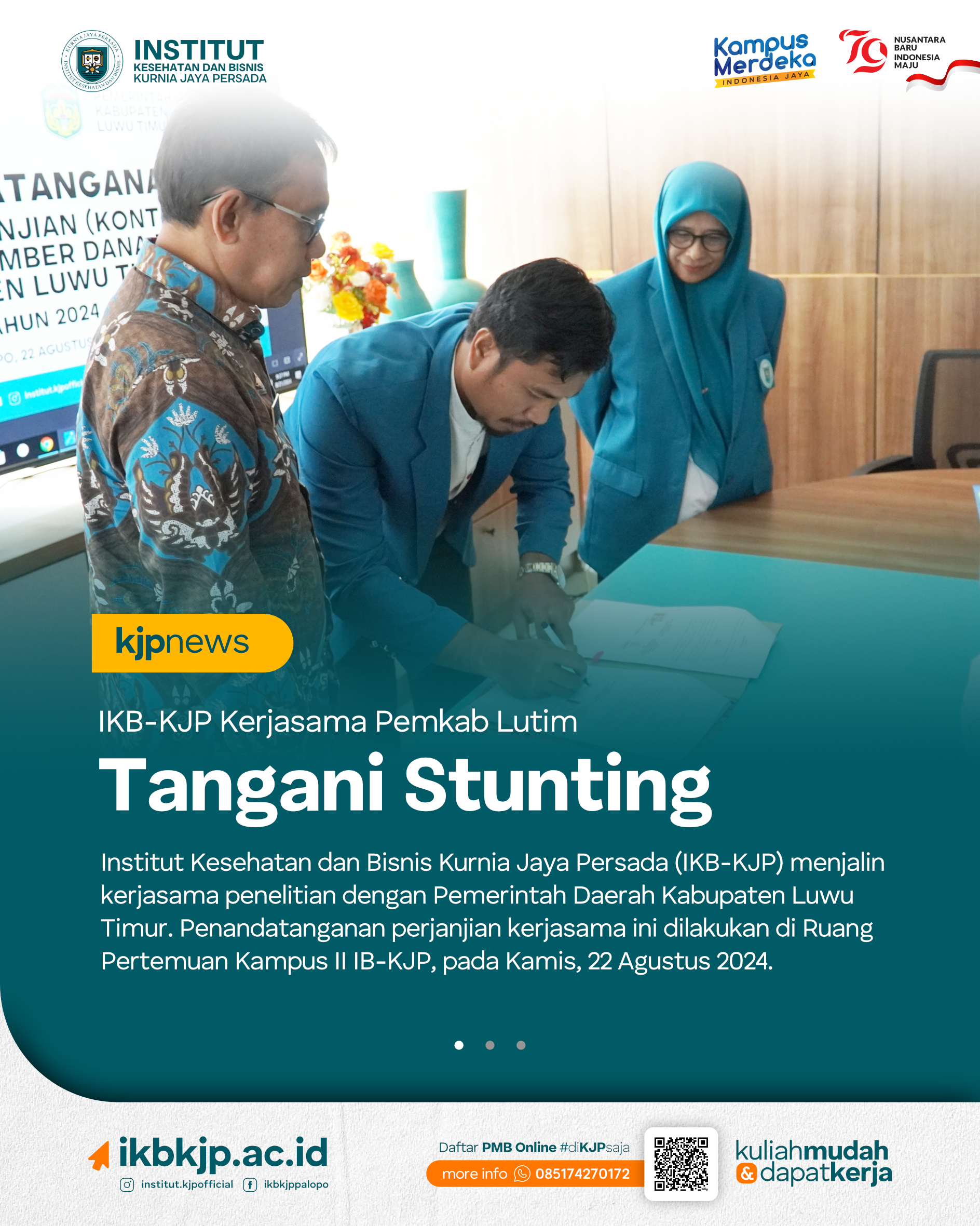 KJPNews – Institut Kesehatan dan Bisnis Kurnia Jaya Persada (IKB-KJP) menjalin kerjasama penelitian dengan Pemerintah Daerah Kabupaten Luwu Timur. Penandatanganan...