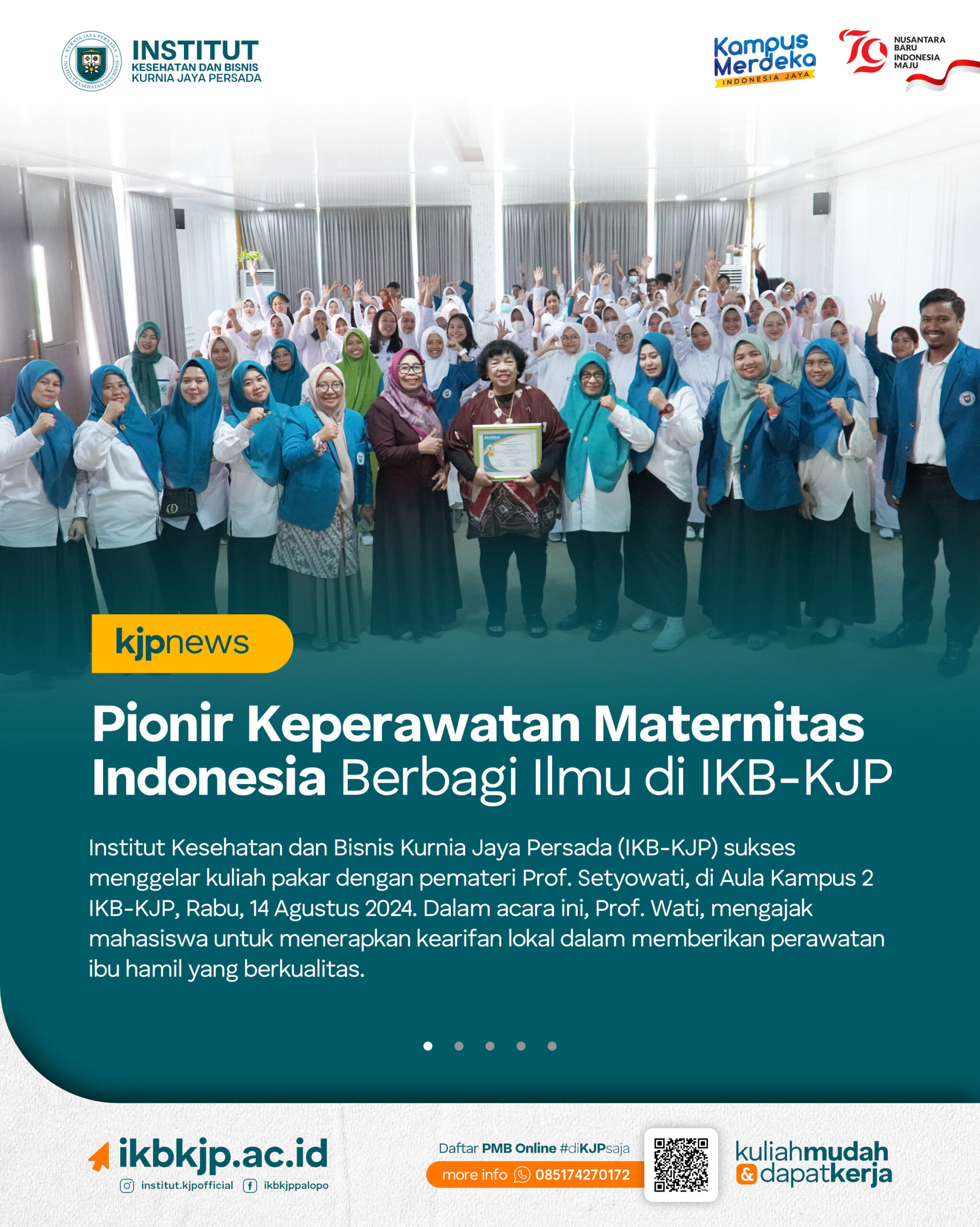 KJPNews – Institut Kesehatan dan Bisnis Kurnia Jaya Persada (IKB-KJP) sukses menggelar kuliah pakar dengan pemateri Prof. Setyowati, di...