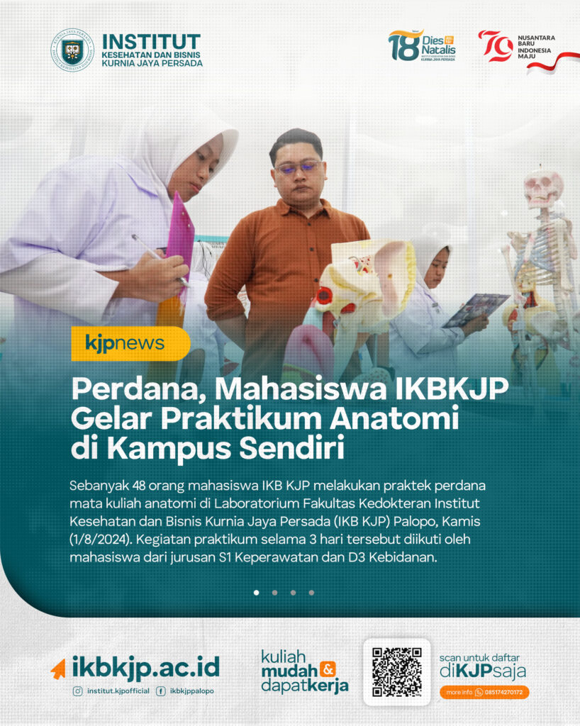 KJPNEWS – Sebanyak 48 orang mahasiswa IKB KJP melakukan praktek perdana mata kuliah anatomi di Laboratorium Fakultas Kedokteran Institut Kesehatan dan Bisnis Kurnia Jaya Persada (IKB KJP) Palopo, Kamis (1/8/2024). Kegiatan praktikum selama 3 hari tersebut diikuti oleh mahasiswa dari jurusan S1 Keperawatan dan D3 Kebidanan.