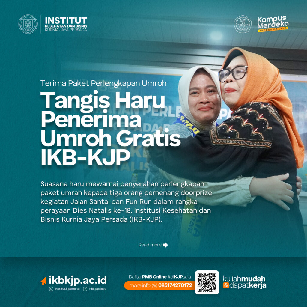 Paket umrah diserahkan langsung oleh Pembina Yayasan Kurnia Jaya Persada, Dr. Hj. Nurhaenih, S.Kep., M.Kes., bersama Rektor IKB-KJP, Prof. Dr. Rusdiana Junaid, Grad.Dipl.TESOL., M.Hum., M.A., serta perwakilan dari Bank Muamalat sebagai salah satu sponsor.